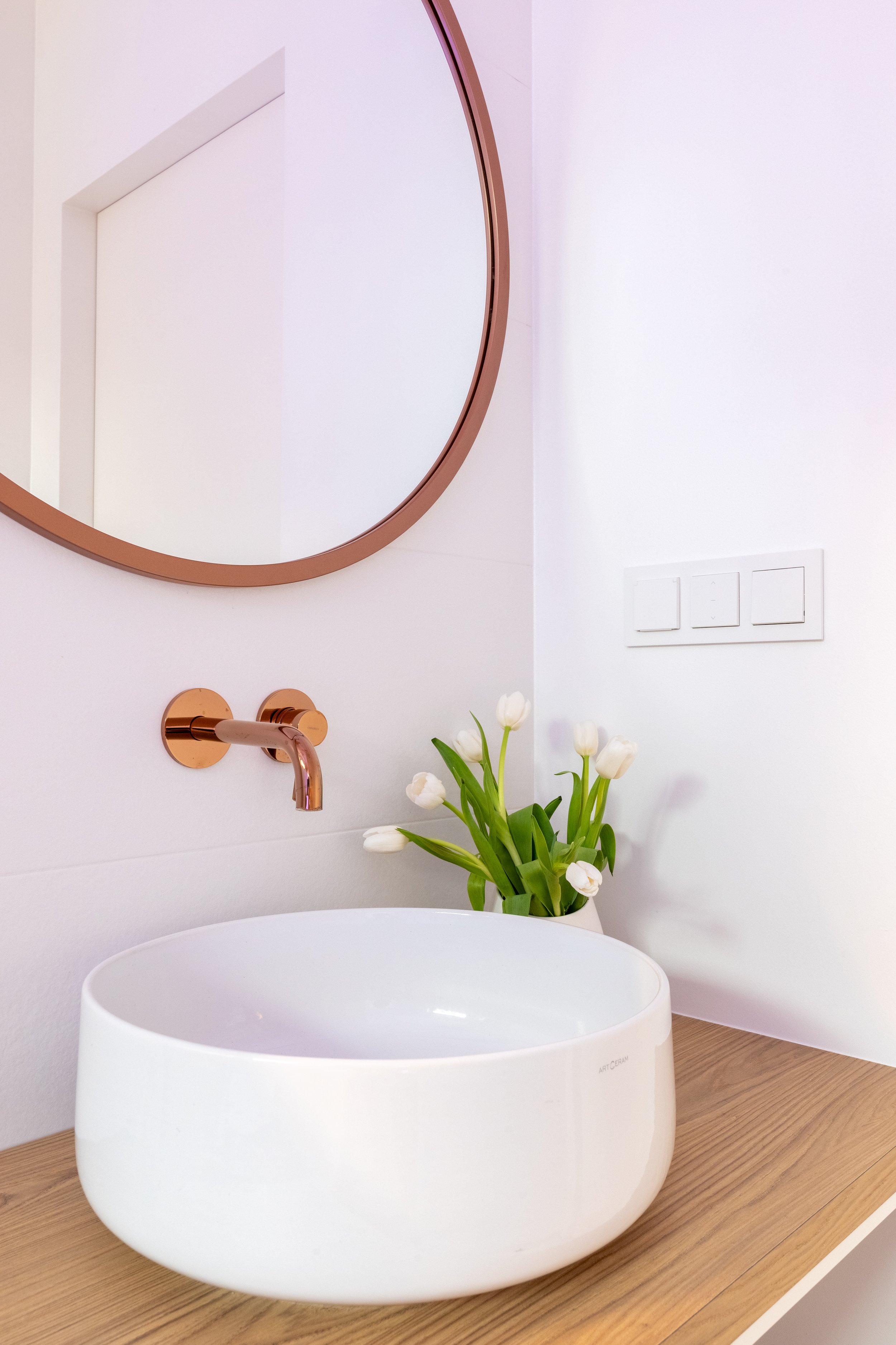Całość uzupełniają baterie i okucia w kolorze miedzi ― nawiązujące do dekoru